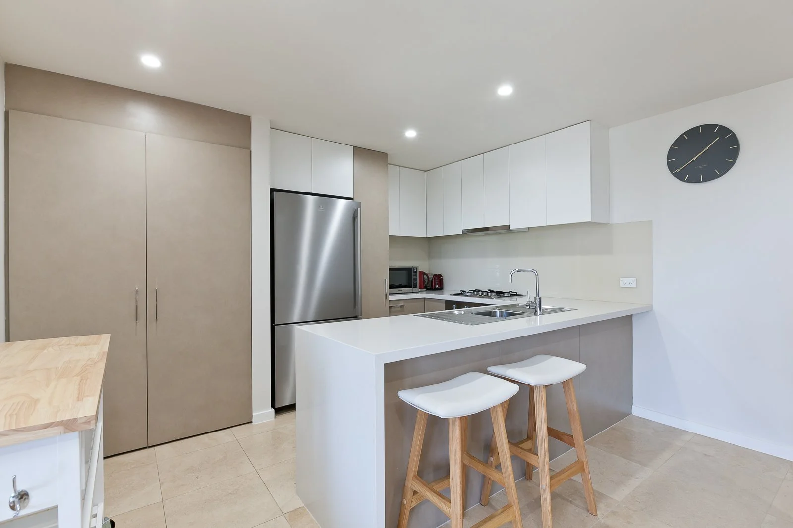 The kitchen is generous in size and has and abundance of storage, gas cooking and dishwasher. With the laundry tucked onto the cupboard and a large pantry. It features open plan living, the kitchen overlooks the large dining area and lounge room, with smart TV, large sofas, it’s perfect for a relaxing night in.